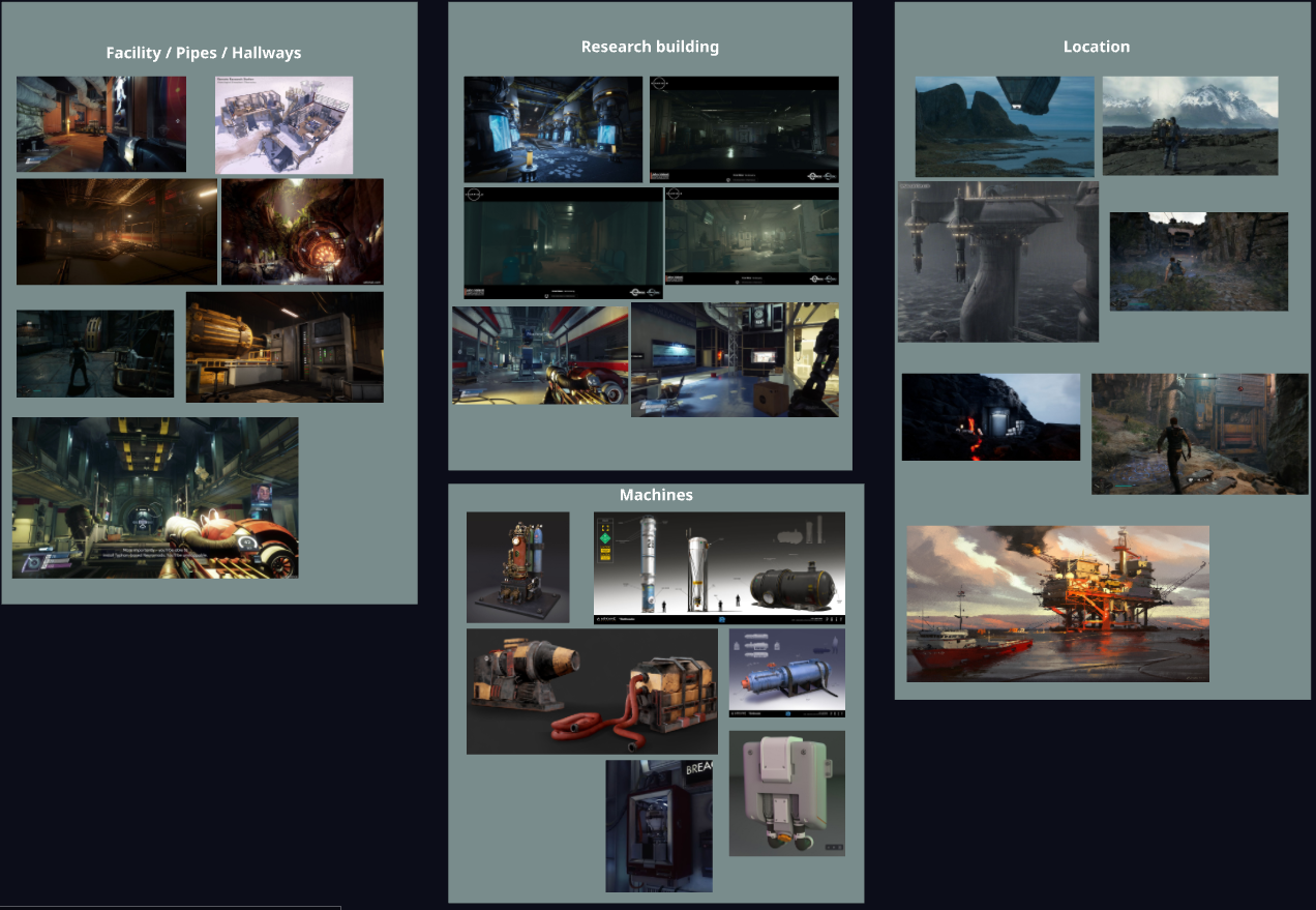In my design process, finding references is a big part to help me get a visual representation of my level. It also allows me to share my thoughts with coworkers / friends, and early iterate on my ideas with their feedback.