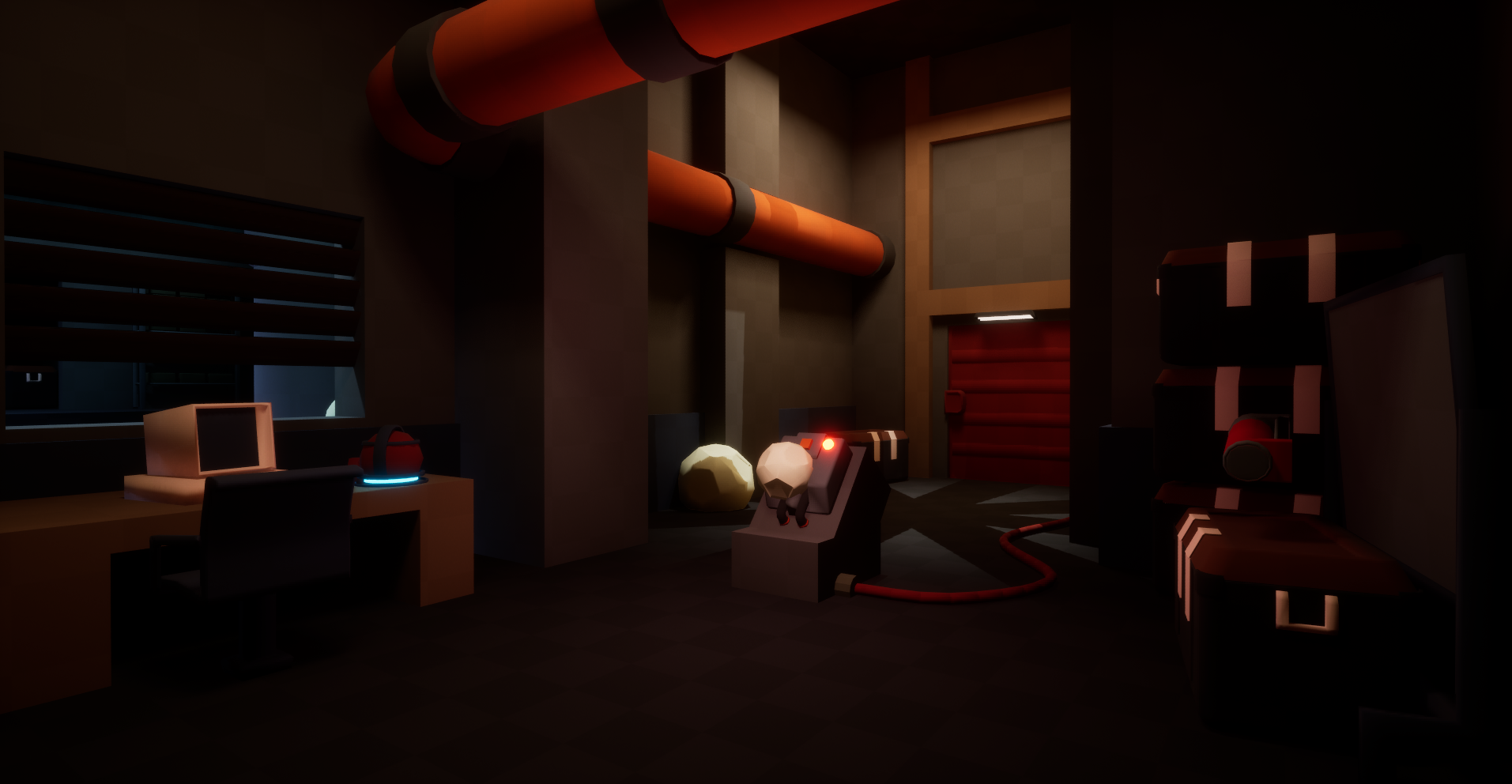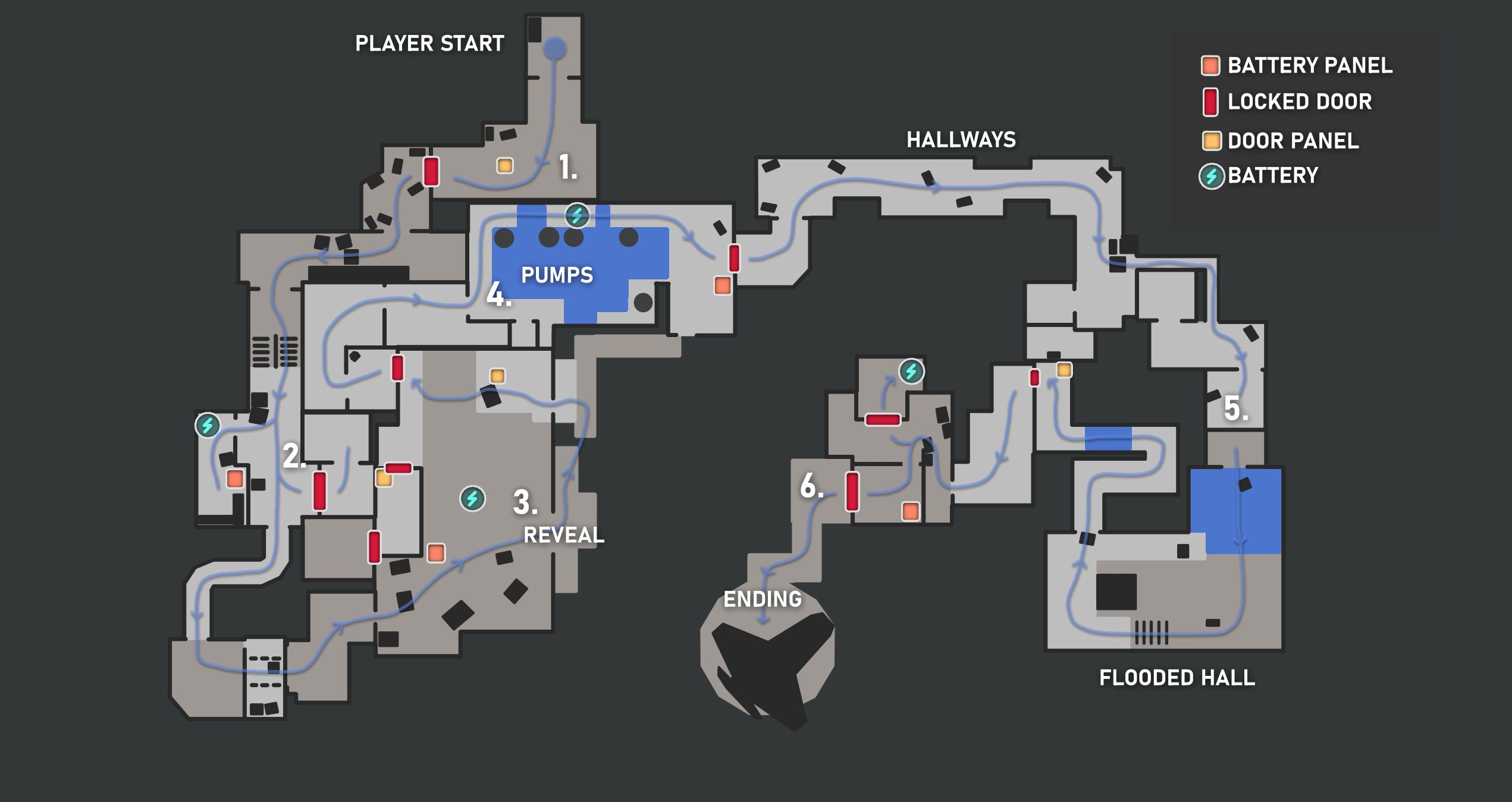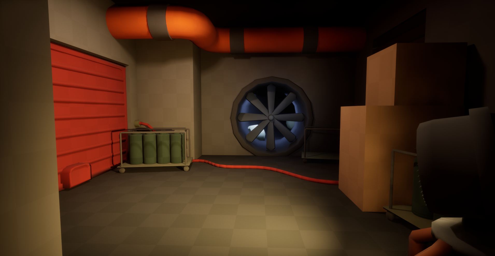 In early playtesting I noticed that some players could easily get confused on where to go next. One of the solutions to this was to add movement in the level. With the use of mechanical fans and pumps, players started to advance more quickly through the level and got stuck less.